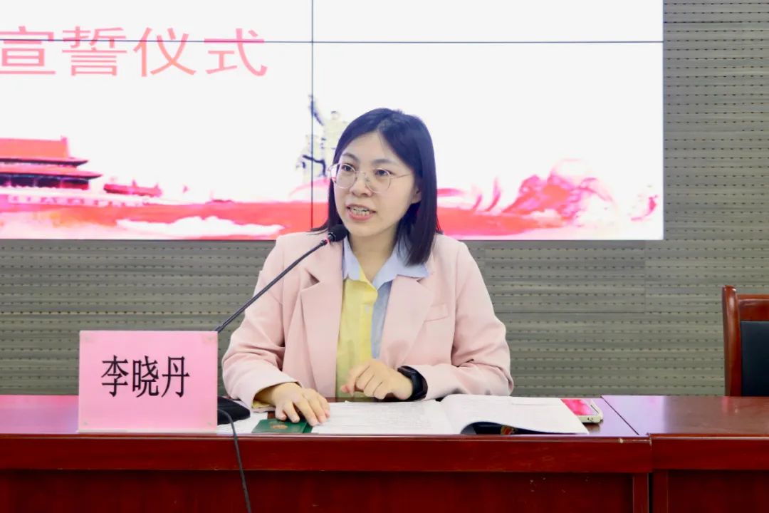 高三年级团委负责人李晓丹宣读《团章》中有关团员的义务和权利的条款
